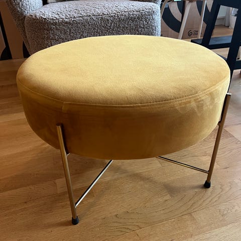 Padborg sittpuff i guld (senapsgul) i sammet från Jysk.