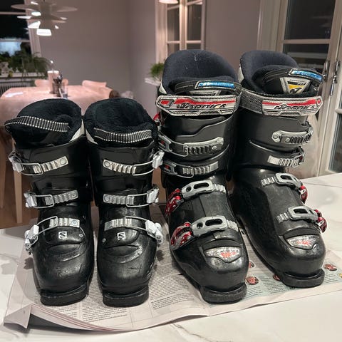 Två par Alpina Pjäxor: 285-290mm innermått / EU storlek 44-44.5
