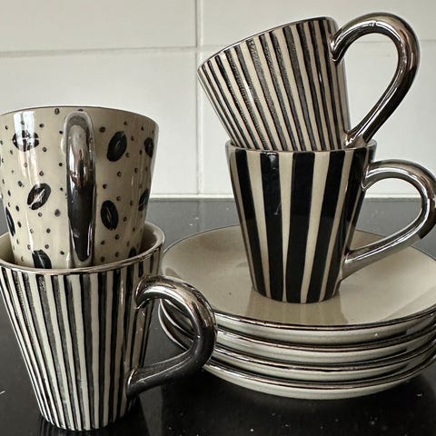 8 kaffekoppar med fat från Scandi Living/Nordic Nest.