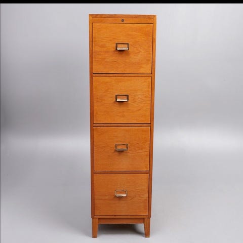 Två äldre arkivskåp i mycket fint skick. Arkivskåpen är mycket gedigna och tillverkade av ek. Skåpen kan stå tillsammans eller var för sig.