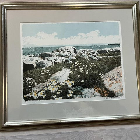 Fin tavla i träram, mått ca 61x45. Midnattssol över Saltoluokta