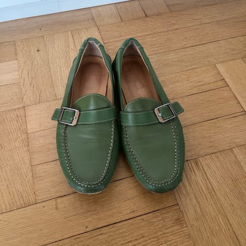 Flattered loafers Bon Bon i storlek 37. Skorna är i brun mocka med slät ovandel och sömdetaljer runt tåpartiet. Yttersula i läder med gummiparti vid hälen. Passar som vardags- och kontorssko. Levereras med tygpåse enligt bild om så önskas! Använda två gånger.