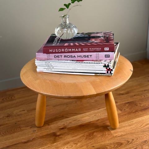 Trots sitt åldrade uttryck är pallen hel, stadig och fullt användbar – perfekt som extra sittplats eller som en liten avlastningsyta i hemmet.
