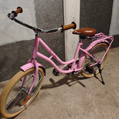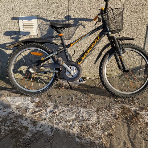 Crescent CSR 1504 barncykel med 20" hjul. Cykeln har vit ram med rosa detaljer och aluminiumram enligt märkning på ramen. Utrustad med pakethållare bak, skärmar, ringklocka och handbromsar. Styre med handtag, varav ett utbytt, samt sadel i svart och rosa. Passar barn som behöver en cykel med 20-tums hjul för vardagscykling och fritidsbruk