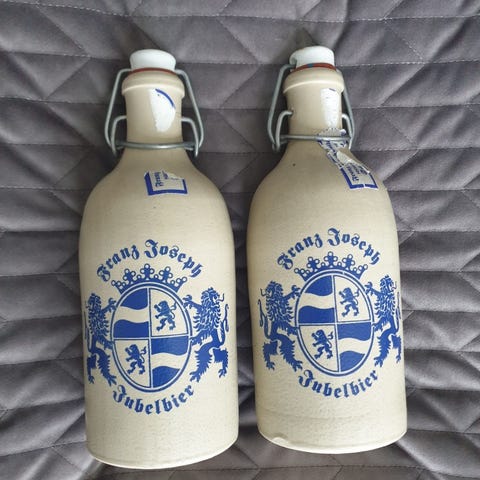 Ölsejdel i keramik med reliefmotiv runt om. Sejdeln har flerfärgad dekor med bland annat byggnader och figurer samt markerad kant upptill och nedtill. Handtag på sidan för stadigt grepp. Passar för servering av öl eller andra drycker samt som prydnadsföremål.