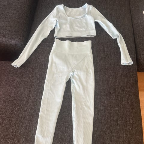 Träningskläder, båda topparna från SOC, de svarta tightsen från allera och de beiga från stronger. Den svarta toppen är något nopprig men alla plagg är nästintill oanvända.