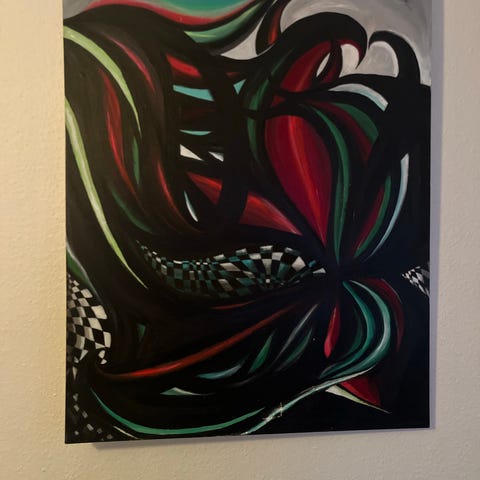 Calle Örnemark.Abstrakt tavla akryl? på duk röd grå blå