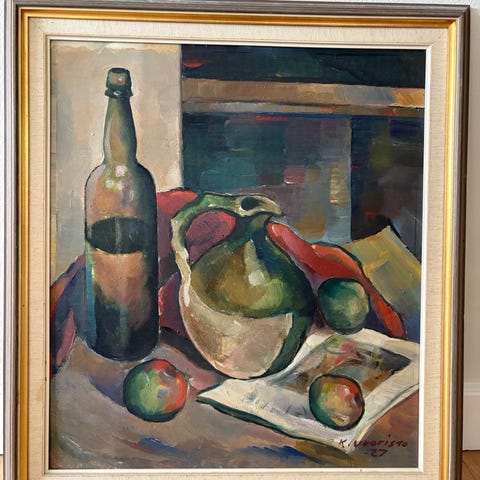 Vet inte vilket material han har målat den i?
