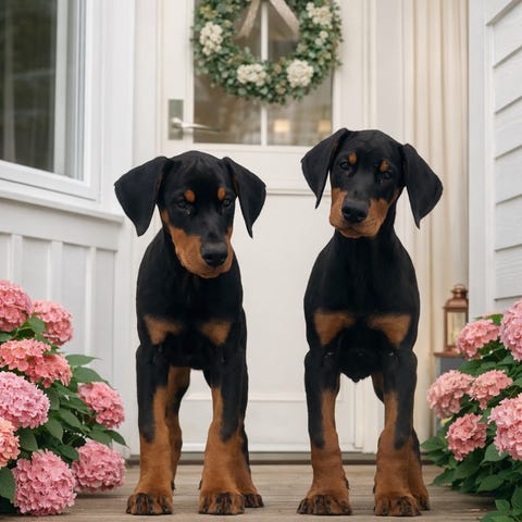 Vår fina tik Zelda har fått valpar, Zelda är en supertrevlig Dobermann tik som lever med oss som familjehund, hon är vänlig mot både människor och andra hundar.