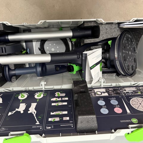 Selen stöder sanderns vikt när du arbetar över huvudet; möjliggör kontinuerlig, ergonomisk arbetsutveckling och en hälsosam arbetsmiljö; helt justerbar för att anpassa till alla användare; Enkel, verktygsfri fastsättning och borttagning av slipmaskinen; kompatibel med Festool Planex gipsslipare