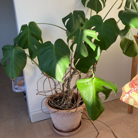 Monstera krukväxt. Växten står i en dekorativ ytterkruka och passar som inomhusväxt.