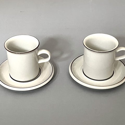 Tekopp ur Fennica-serien designad av Ulla Procopé och Rickard Lindh för Arabia. Beigevit med brun kant, producerad 1982–1984. Säljs styckvis. Finns 4 stycken