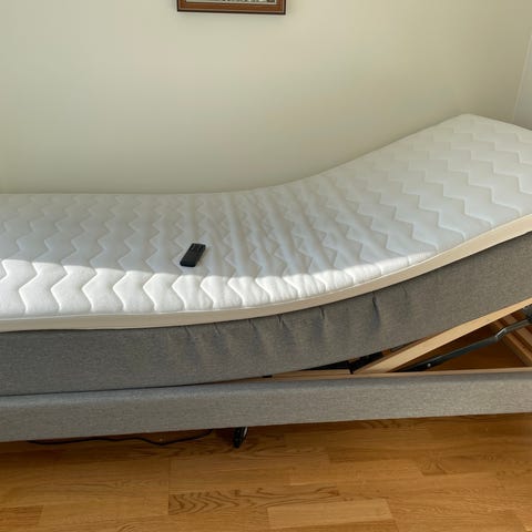 Säljer en ställbar säng med ribbotten och eldriven justerbar huvud- och fotända. Bra skick och allt fungerar som det ska (höj/sänk funkar fint).