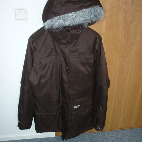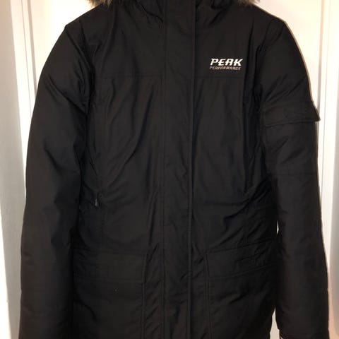 Everest vinterjacka för dam i storlek 38 (40). Jackan är svart och fodrad med dun/fjäder. Modellen har huva med pälsimitation och längd som går ned över höften. Yttertyget är slätt och jackan stängs med dragkedja och skyddande vindslå. Passar som varm ytterjacka under kalla vinterdagar.