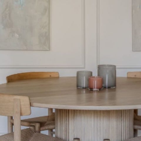 Stabilt och hållbart runt bord Tillverkat av högkvalitativ E1-spånskiva och med en pulverlackerad metallbas, erbjuder vårt matbord i trä exceptionell stabilitet och robusthet och klarar upp till 90 kg.