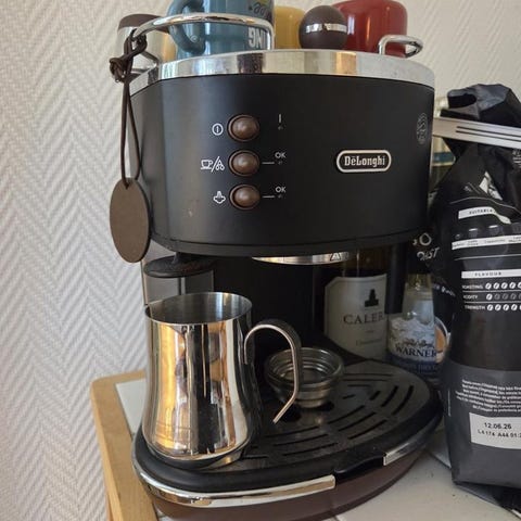 Maskinen är i fint skick och fungerar som den ska. Passar lika bra för nybörjare som för dig som vill ta kaffet till nästa nivå hemma.