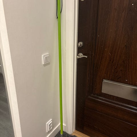 Ispik för långfärdsskridskor, isfiske, ispromenader. Metallspets. Längd 159 cm, handledsrem. Flyter i vatten. Nyskick. Finns i Karlholmsbruk