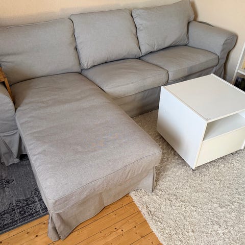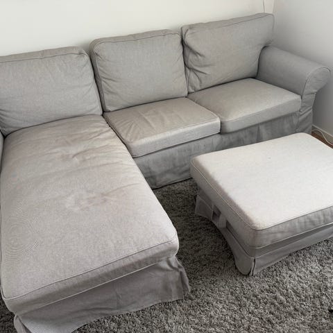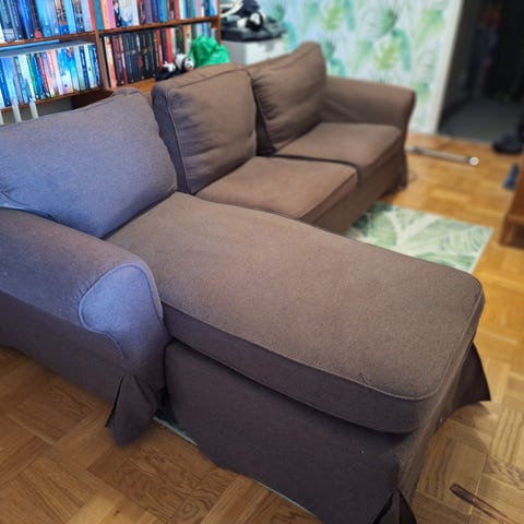 EKTORP 3 sitssoffa med schäslong. Brun klädsel från Bemz.