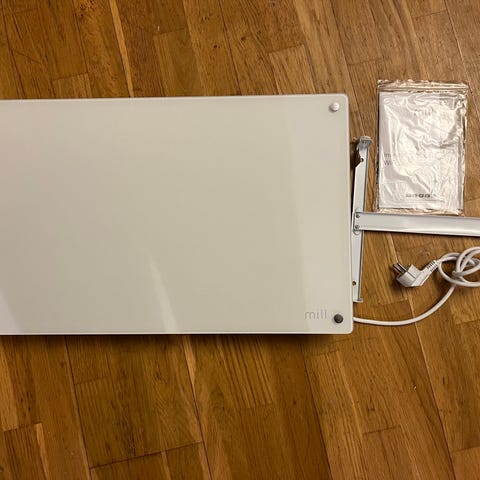 Elementet är avsett för fast montering på vägg och ansluts med sladd till vägguttag. Baksidan har fästen för montering. Passar i mindre rum eller utrymmen där ett diskret värmeelement önskas.