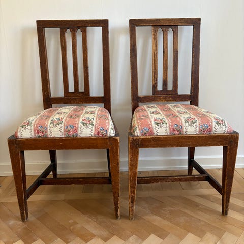 Troligen från seklets början, handgjorda utan spikar och skruvar. Endast träplugg. I gott skick utifrån sin ålder.