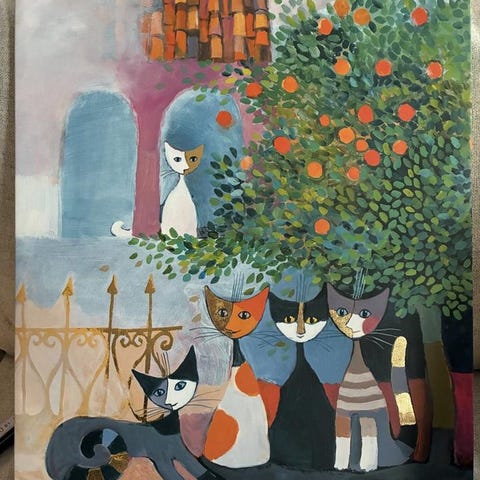 • Motivet med kattungar under parasoll är ett av hans mer populära