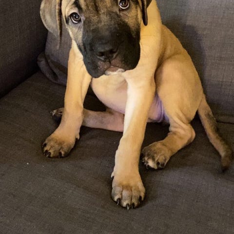 Cane Corsotik 3 år söker ny matte eller husse. Ingen problemhund. Önskar mkt motion, långa promenader och vill gärna jobba med huvudet. Leta godis eller gömda bollar ute t ex. Går dock INTE ihop med katter! Har mkt vakt. Snäll, mysigt, kelig och super vacker.