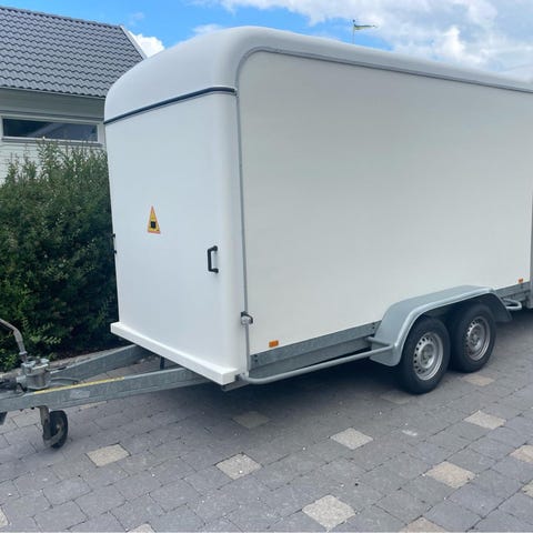 Lättlastat och rymligt, bromsat släp med lastöglor och lastskenor invändigt. Dörrar bak passar utmärkt om man önskar lasta med truck eller har begränsat utrymme att lasta/lossa på. Stödben, stödhjul och lastramper i aluminium medföljer. Armerad glasfiber i tak och front. Kraftig 15mm vattensäker plywood i väggarna (går att skruva i väggar). Epoxibehandlat, slittåligt golv.