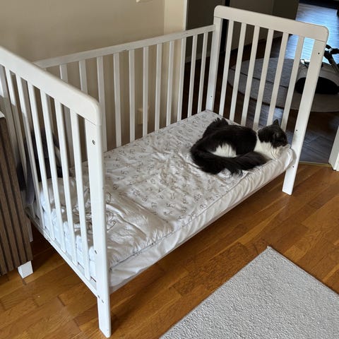 Säljer en fin spjälsäng i grå färg. Stabil och rejäl säng som passar perfekt i barnrummet. Madrass och spjälsängsskydd ingår i priset, så det är bara att bädda och använda. Använd men i fint skick.