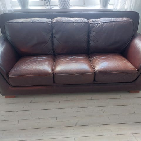 Vintage klassiks fin mjuk och skön bekväm brun / mörkbrun / brunsvart Howardfötålj med tillhörande fotpall.
