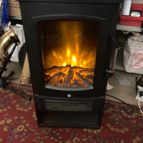 Elektrisk kamin i svart utförande med glasfront. Kaminen har inbyggd dekorationsved och flam effekt som ger intryck av brinnande ved. Nertill finns utrymme för förvaring av ved eller dekoration. Passar för inomhusbruk, exempelvis i vardagsrum eller på inglasad balkong, där man vill ha eldrivna lågor utan rök eller skorsten.