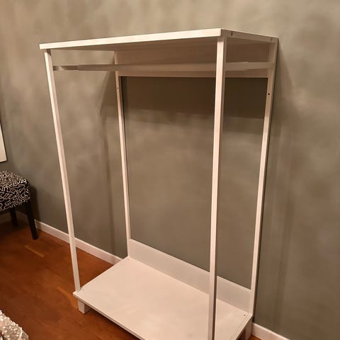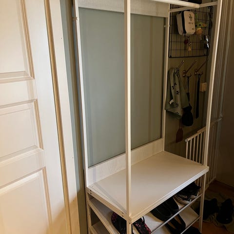 Jag säljer en fristående garderob från serien PLATSA från Ikea. Garderoben har enligt min uppfattning inga skador. Krokarna ingår och kan tas bort.