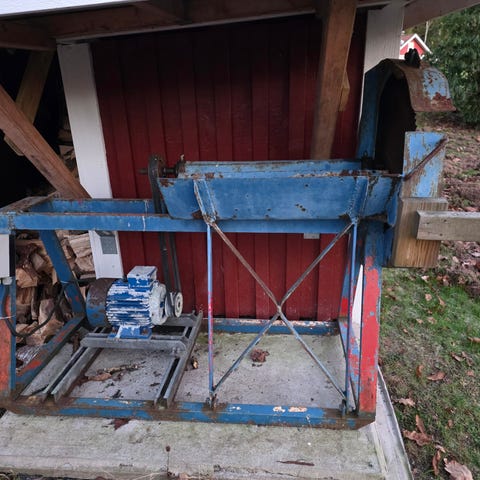 Vedkap med 200 cm stål vagga och 70 cm klinga. Välfungerande 3 fas helt i stål, rostskyddad… obs med hjul och skaklar så den går relativt enkelt att flytta. Motorn är 3 fas med ca 10m tillhörande kabel. Lite använd men hållar utan vidare några generationer till.