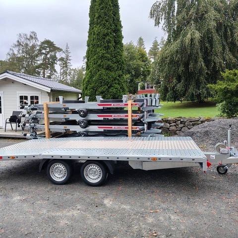 Multitransport/plattformssläp som lämpar sig perfekt åt biltransporter och maskintranssporter.