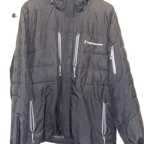 Peak Performance skidjacka i vit och svart färg. Jackan har huva, hel dragkedja framtill och flera fickor med dragkedja. Passar för skidåkning och andra vinteraktiviteter.