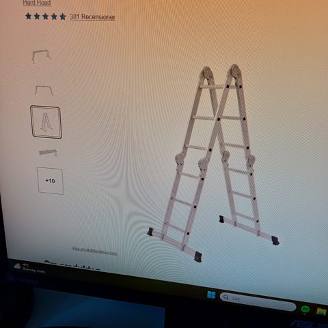 Vit loftstege i trä med flera steg. Passar för anslutning till loft, sovloft eller liknande upphöjd nivå inomhus. Stegen lutar mot vägg eller loftkant och kräver fast montering för säker användning. Färg och utförande gör att den kan kombineras med många typer av inredning.Säljes styckvis för 150kr
