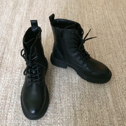 vinterskor i kängmodell i storlek 40. Svarta kängor med snörning framtill och dragkedja på sidan för enklare av- och påtagning. Grovmönstrad yttersula i gummi för bättre grepp. Ovandel i slätt material med enkel design. Passar som vardagskängor under kallare säsong.