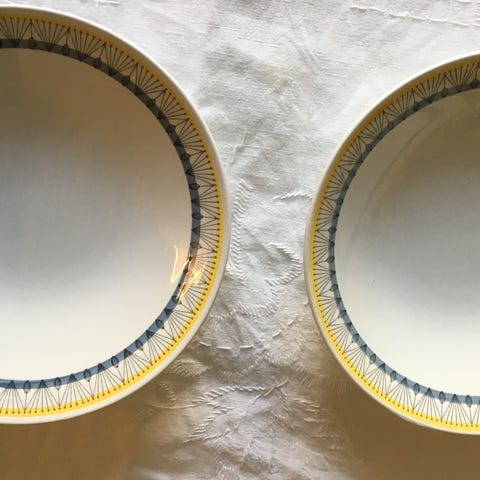 Klassisk mattallrik ur serien Annika från Rörstrand, formgiven av Marianne Westman och producerad mellan 1972 och 1981. Serien är en välkänd representant för svensk 1970-talsdesign med sitt grafiska uttryck och varma färgskala.