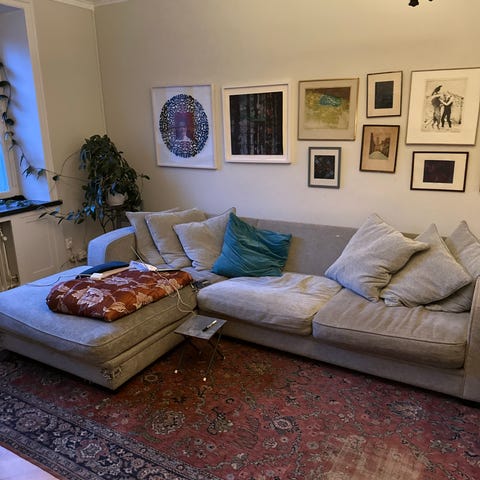 Turkos soffa med divan från Stalands. Generellt fint skick men finns slitningar på vissa ställen som syns på nära håll, se bilderna.