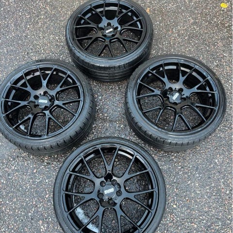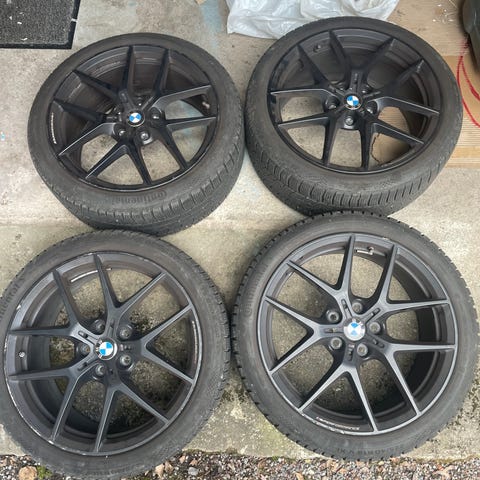 Fortfarande mycket mönster kvar på däcken. Några mindre märken finns på fälgarna. Helhetsintrycket är mycket bra.