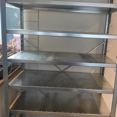 Två hemmabyggda hyllor av metall