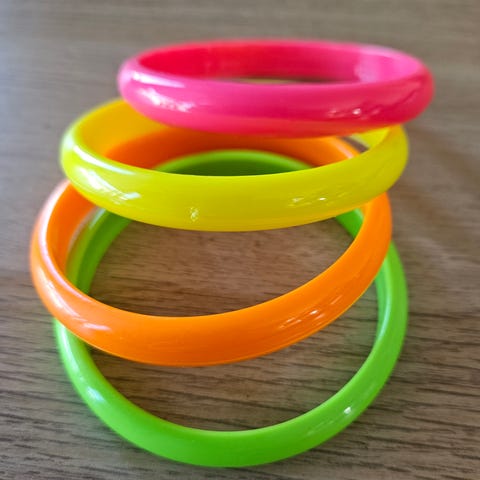 Halsband 4 st i neonfärger. Plast. Ca 100 cm. Helt nya.