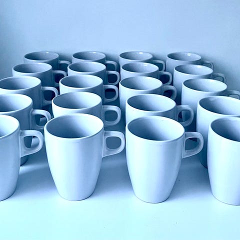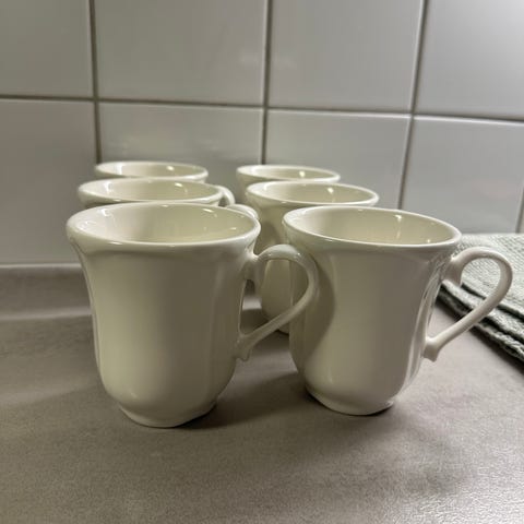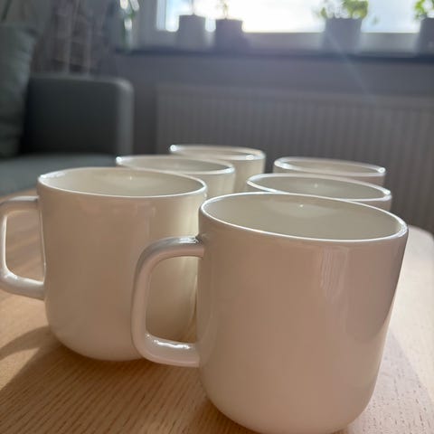 Vi använder aldrig dessa längre och hoppas de kan glädja någon annan istället. Fyra av dem är i fint skick, de andra två har en spricka respektive missfärgning.