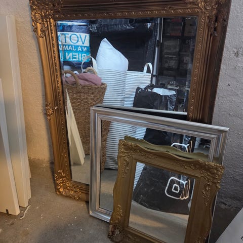Den långa spegeln är 42 x 132 cm och den lilla spegeln är 51 x 61 cm.