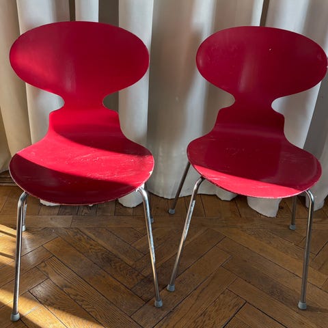 Två st orangetonade stolar, plexiglas, med kromade ben. 500 kr per stol. Finns att hämta i Linköping.