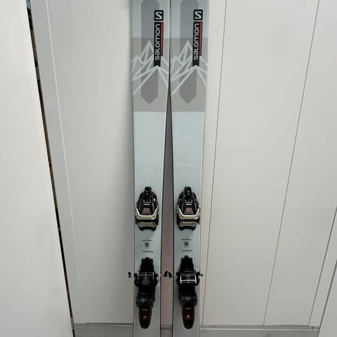 Salomon QST Stella skidor 167 cm med bindningar. Kombibindning S-lab shift 10 bra för topptur och pist monterad för 286 mm går att justera. Väldigt lite använda, väldigt fint skick! Se dock sista bilden för skada uppepå skidan. Helt felfritt belag.