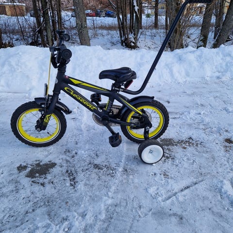 Cykeln har låg ram som underlättar på- och avstigning för mindre barn. Utrustad med kedjeskydd, skärmar fram och bak samt reflex fram och bak. Styre och sadel är justerbara i höjd för att kunna anpassas efter barnets längd. Passar mindre barn som ska lära sig cykla eller som första trampcykel efter balanscykel.