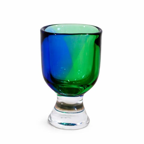 Skål på fot av Vicke Lindstrand för Kosta. Klarglas med grön dekor. Signerad. Diameter 19,5 cm, höjd 19 cm.