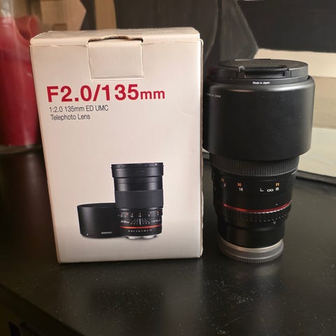 Enligt rubrik, Samyang F2.0 135mm ED UMC, endast använt till Astrophoto, cirka 800bilder totalt, under övervakning.