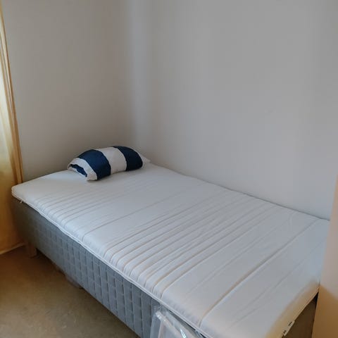 Mycket bekväm och fläckfri säng. Har använts med madrasskydd och har stått i gästrummet.