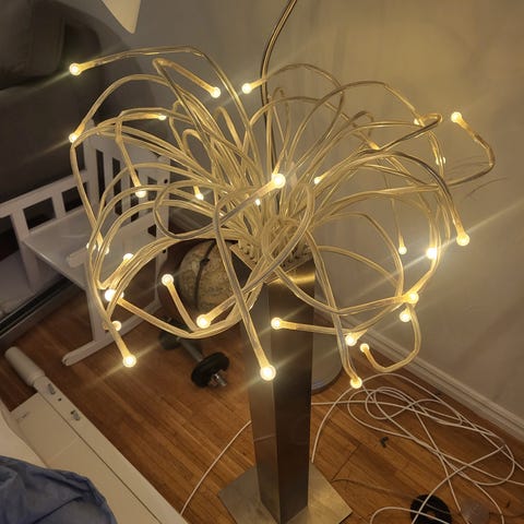 Snäckskalsprydnad med ljusslinga.